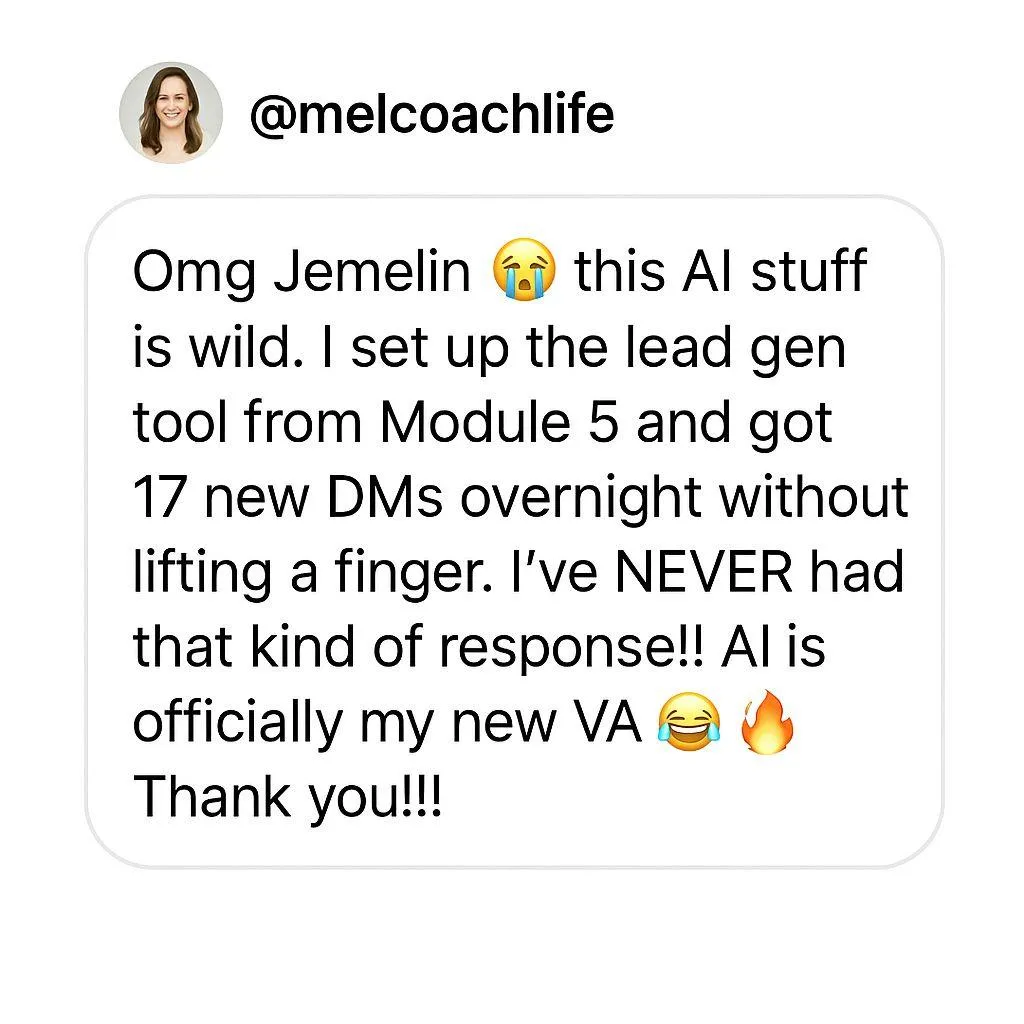 1️⃣ Those stuck in confusion and overwhelm: lost in YouTube rabbit holes, testing every AI tool, and following a dozen “AI gurus” with no real results to show. They spend hours learning, but nothing changes — no systems, no income, just more noise.